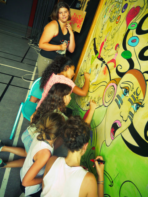 176 participants se sont initiés au graffiti et ont mis en couleurs cette fresque de 22 m2.